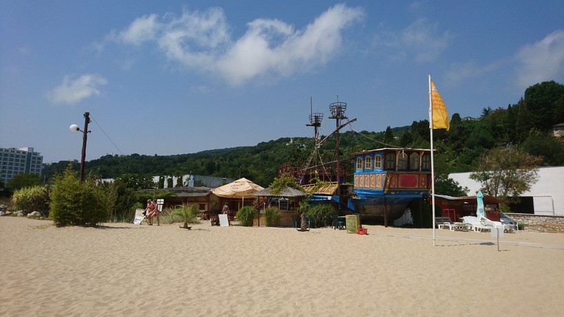 Проснувшись утром, распахнула окно. Ветер стих, солнце мягко пригревало, пахло морем и цветами. К обеду воздух разогрелся градусов до +20-22 и я решила сходить на пляж. Народу не очень много. Кто-то играл в волейбол и пляжный футбол, кто-то читал, растянувшись на шезлонге, я отправилась бродить вдоль кромки моря. Вода ледяная, не выше +16-17. О купании и думать было нечего. Пришлось ограничиться солнечными ваннами.