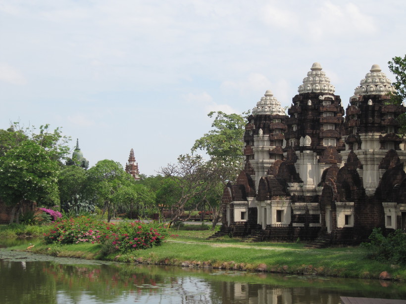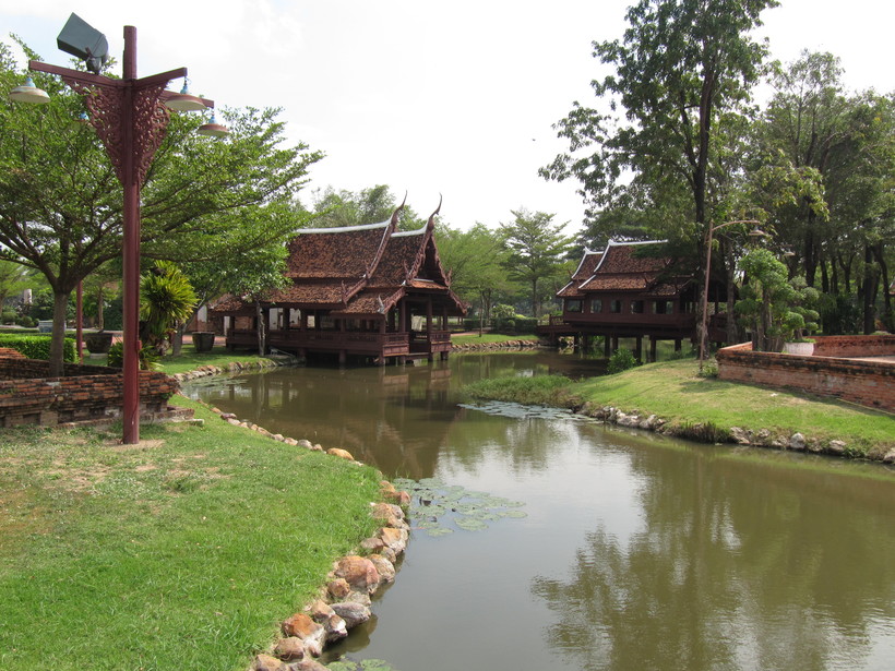 отдельно о парке Муанг Боран( Сиам в миниатюре). Парк очень красивый и полезный с точки зрения знакомства с различными регионами Таиланда. На входе в парк вы возьмёте велосипеды и можете колесит по парку целый день. Пешком обойти его затруднительно. Везде вас будут направлять указатели и можно обращаться так же к карте. В стоимость билетов помимо велосипеда входит лодочная экскурсия по макету плавучей деревни ( лодкой на вёслах управляет сотрудник), а так же моторная лодка по реке на которой установлены макеты лодок Королевской династии. Доехать до парка лучше на такси от станции легкого метро Samrong. Хотя возможно метро уже проложили дальше - там все время дальше развивается ветка.