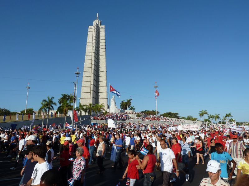 В Гаване люди собираются на демонстрации, гордые за себя и свою страну (и даже повальная бедность не в счет), и проходят по улицам города. Шествие начинается утром и заканчивается в обед, после чего местные расходятся по домам и продолжают там праздновать один из самых значимых праздников Кубы. Нам удалось застать это действо. Все как в лучших фильмах союза. Счастливые люди, нарядные и праздничные, отмечают день Труда.