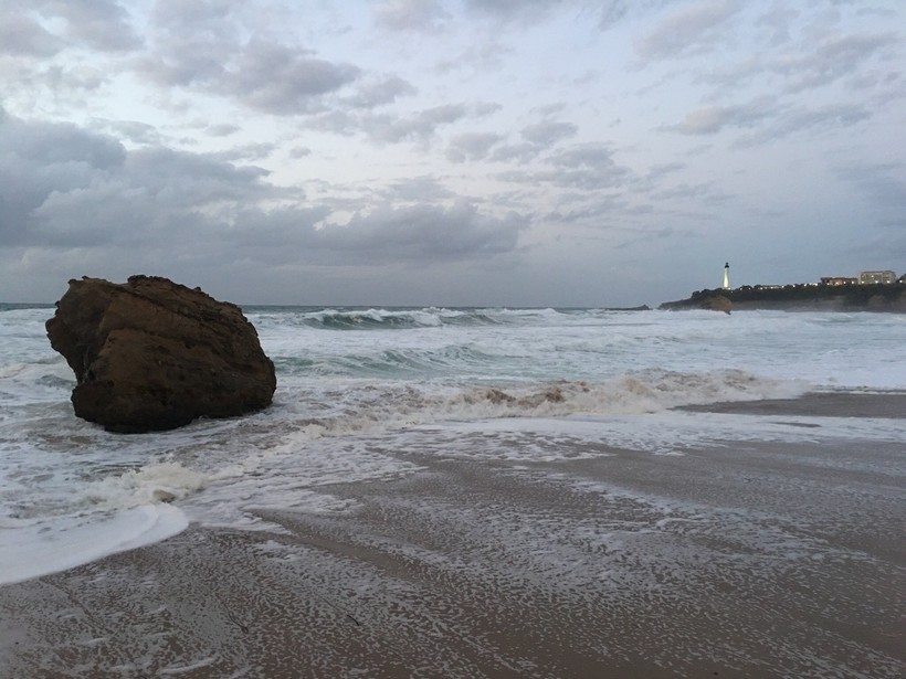 По прилете Биарриц не замедлил порадовать хорошей погодой. Она располагала к прогулкам, посещению достопримечательностей, я даже как-то пообедала на открытой террасе. В общем, доступно было все, за исключением плавания. Море холодное и неприступное. Хотя опытные серферы продолжали седлать волны и в декабре, на пляже я предпочитала притулиться в безветренном уголке и почитать, вдыхая просоленный зимний воздух.
