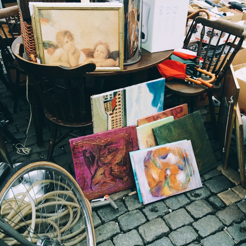 В центре Брюсселя есть интересный блошиный рынок, который работает по воскресеньям с утра и до обеда. Он находится на Place du Jeu Balle. Меня удивило, что тут помимо картин, всякого барахла в виде книг и пластинок, можно найти всякие африканские статуэтки и предметы, которые можно интересно вписать в интерьер)