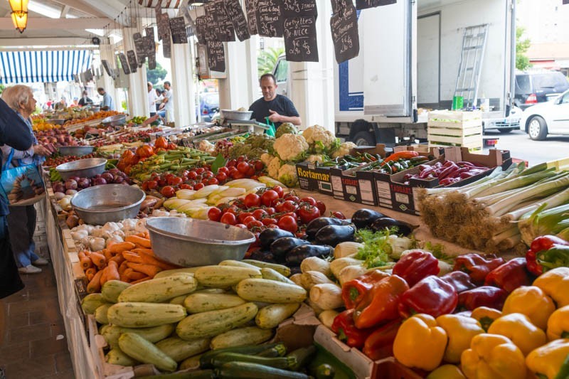 Что-что, а кушать в ресторанах/кафе в Каннах для простого смертного очень дорого. Недолго думая, в первый же день в поисках продуктов я отправилась на местный рынок. Его прилавки мне напомнили рынок в Крыму. Здесь как раз созрели всевозможные овощи и фрукты: огурцы, помидоры, картофель, кукуруза, кабачки, баклажаны, перец, арбузы, дыни, абрикосы, персики, авокадо. Всего и не перечислить! Безусловно, они там вкусные, сочные и без нитратов (по крайней мере, хотелось бы верить).