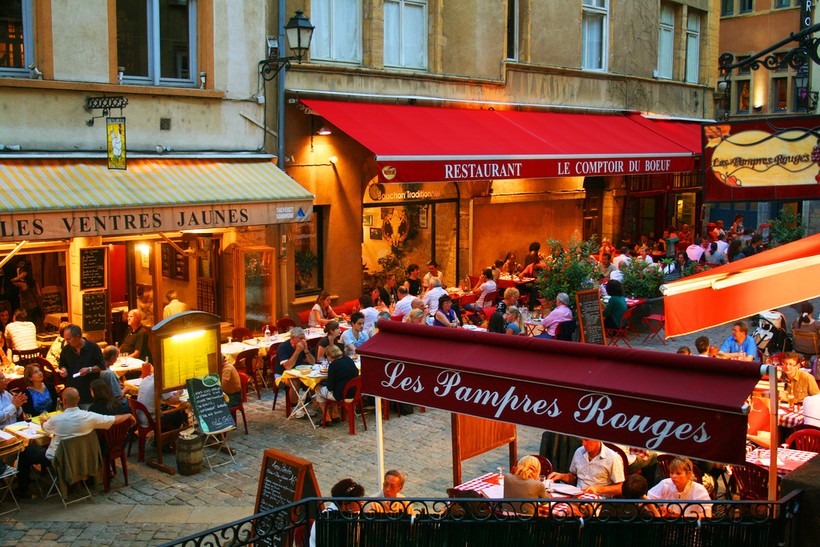 Кстати, о вкусностях) Каких-то экзотических фруктов и овощей здесь, конечно, нет, но Лион всегда славился своей традиционной кухней и множеством как шикарных ресторанов, так и недорогих бушонов (что-то вроде кафешек с более простой, но очень сытной и вкусной едой). Любому, кто когда-нибудь окажется в этом уголке Франции, я советую посетить именно знаменитые лионские бушоны) Там можно отведать много интересных вкусностей: "мозги ткача" (такой необычный свежий творог с зеленью и жареным хлебом, хех), фрикадельки из щуки, кровяная колбаса с яблоками, сладкий хворост…