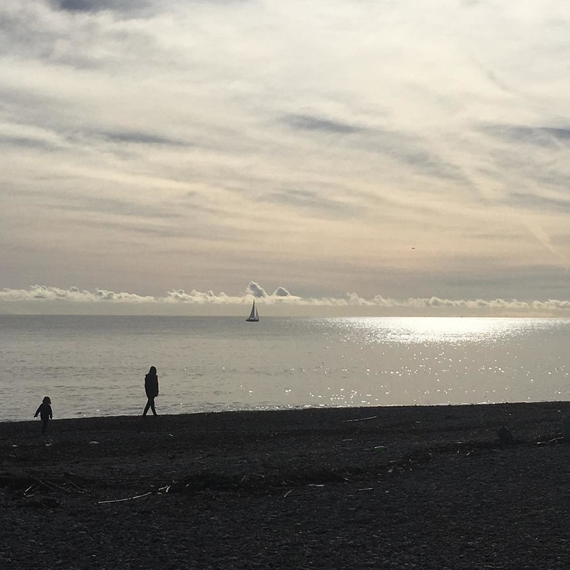 Первые пять дней над головой светило солнце, небо радовало яркой голубизной. Море призывно переливалось от глубоко-синего цвета до нежно-голубого. Народу на пляже тьма, очень много англичан и итальянцев. Жизнь на набережной кипит, как в муравейнике: пешеходы, велосипедисты, дети на роликах и скейтбордах. Расходились ближе к вечеру, когда температура опускалась до +10-12.