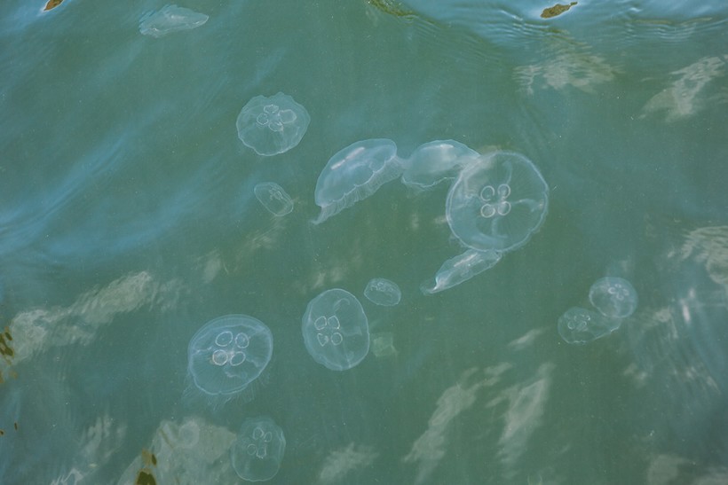 Июльское солнце палит нещадно. В середине дня под ним лучше не сидеть. Мы ходили на пляж рано утром и поздно вечером. Кроме того у берега появляются небольшие медузы. Они не обжигают, но противные. Дети ловят их и бросают друг в друга.