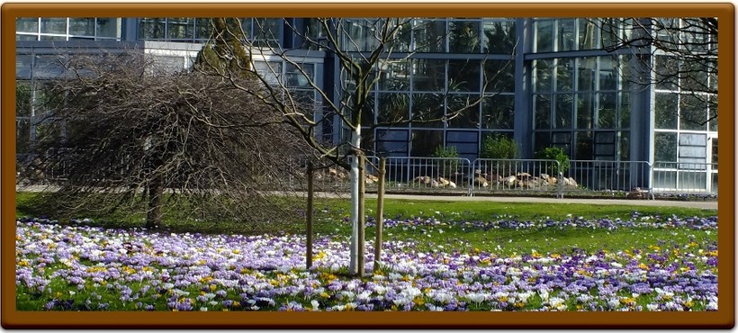 Я всегда веду с городом, особенно незнакомым, мысленный диалог. И он отвечает. Приводит в такие места, после которых просто хочешь раствориться в них. Например, кроме такого важного события как поход на футбол, мы с мужем свое времяпрепровождение и знакомство с городом не распланировали. Мы просто выходили на прогулку и шли, куда глаза глядят, не боясь заблудиться. В одной из прогулок мы забрели в парк. Погода располагала к хорошему настроению – спокойный безветренный денек, солнце периодически пряталось за облаками. Прогуливаясь по парку, можно невольно заметить излюбленные цветы немцев – крокусы. Их можно встретить даже на балконах. Уютно даже на улицах.