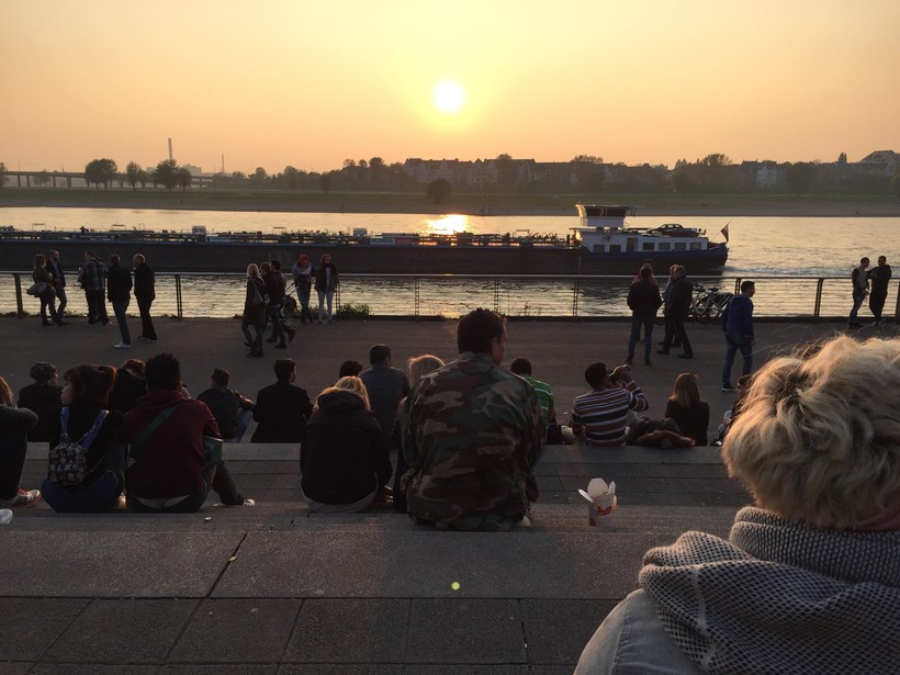 Наказание для любого путешественника – дожди. Они загоняют нас в кафе и рестораны, мешают наслаждаться архитектурой, не дают проводить пешеходные экскурсии. За неделю с неба не упало ни капли, зонт пролежал без дела, чему я несказанно рада. А какие красочные рассветы и закаты разливаются над набережной Рейна! Возьмите напрокат велосипед и подъезжайте к 7 утра или к 20:00.