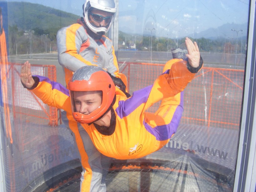 7. Аэротруба - у нас есть одна или даже две аэротрубы. Цены от 700р.- несколько минут. Все снаряжение выдают. Круто.