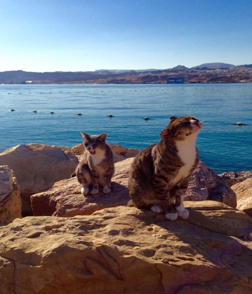 Не верьте рассказам о том, что Эйлат в январе является хорошим местом для отдыха на пляже. Это не правда. Январь - это самый холодный месяц для этого курорта. Ночью на курорте температура падает до 10 градусов. Температура воздуха днем практически никогда не бывает больше 20 градусов. Вода может быть чуть-чуть теплее. Пляжи практически пустуют, а некоторые из них вообще закрыты. На них в этом месяце любят отдыхать разве что дикие кошки, которых подкармливают такие добрые туристки, как я :).