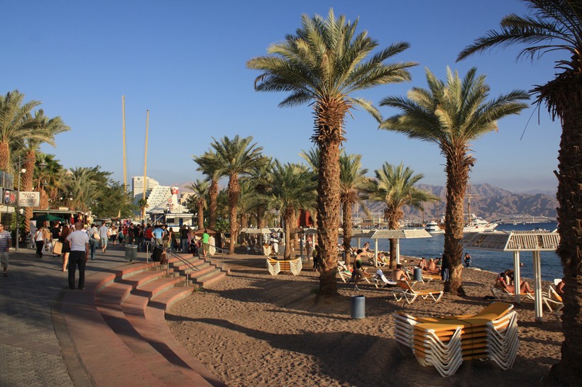 Днём в Эйлате достаточно жарко: средняя дневная температура держится на уровне 34 градусов и может доходить до 44 (максимальная зарегистрированная температура). С 12 до 17 часов лучше держаться в тени или находиться в отеле.