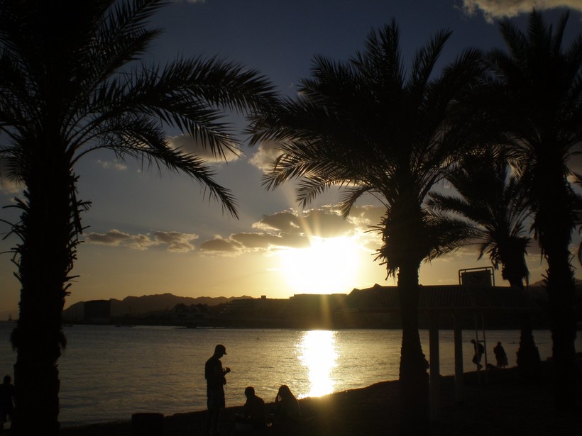 Конец весны в Эйлате жаркий. Здесь дневная температура в мае может перещеголять наши жаркие августовские дни. Уже к полудню воздух прогревался более чем на 30 градусов, и мы с мужем уходили с пляжа. Обратно возвращались только после четырех часов дня. Из-за невысокой влажности жара переносилась легко, но с солнцезащитными кремами, кепками и очками не расставались на протяжении всего отдыха. А вот водичка в море мне понравилась. Чуть больше 20 градусов хорошо освежали после солнечных ванн. На экскурсии мы не ездили, так как этот период считается неблагоприятным для поездок в пустыню из-за жары. Так что никакого катания на верблюдах, квадроциклах и прочих подобных развлечений у нас не было. Все ограничивалось осмотром городских достопримечательностей и посещением местных праздников.