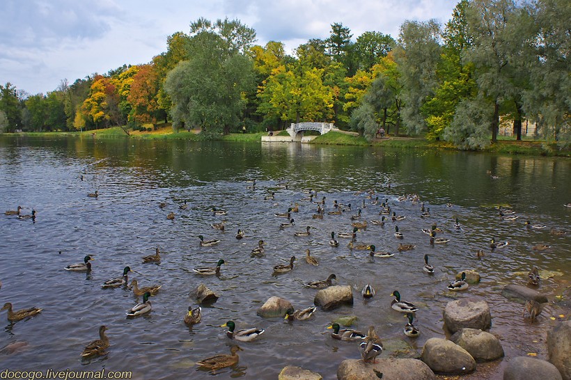Когда отправитесь осматривать красоты города Гатчина, обязательно захватите с собой печеньки или сухарики. Ведь гуляя по дворцовому парку вы непременно захотите покормить местных водоплавающих птичек.