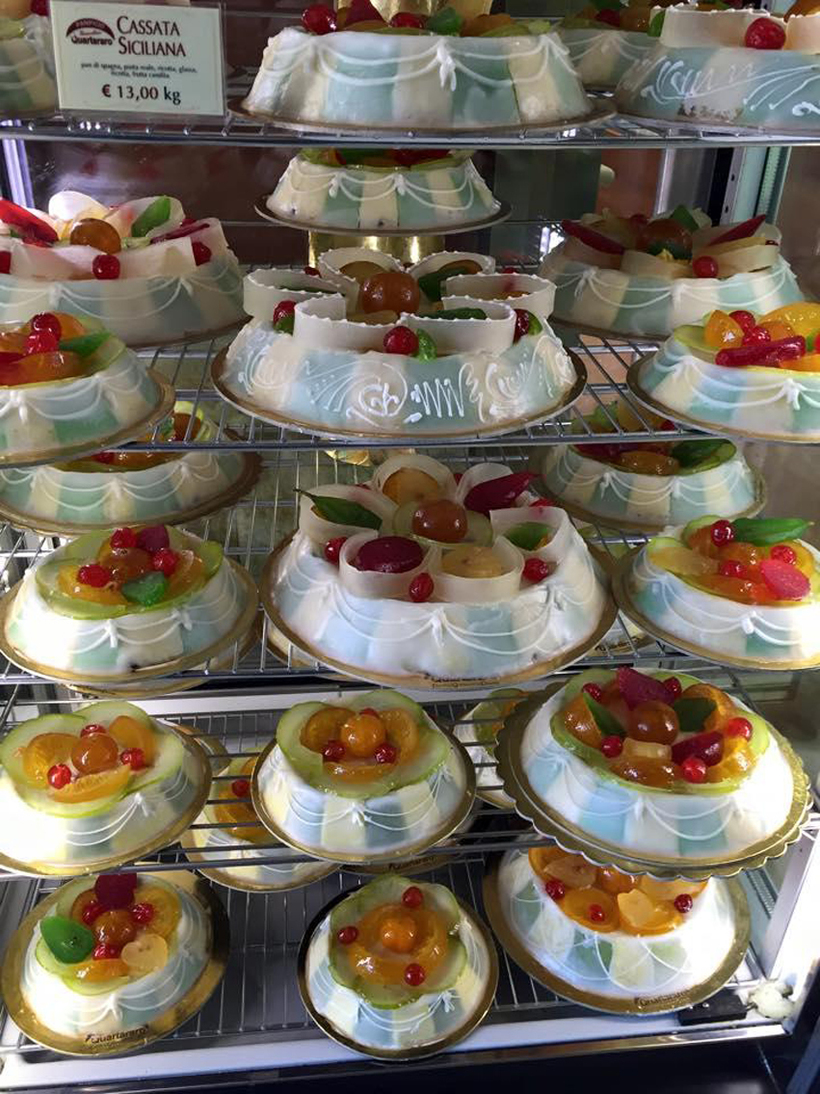 Особенностью среди еды стали традиционные блюда, которые готовятся только к католической Пасхе (в 2016 году Пасха прошла 27 марта). А именно, если вам удастся попасть в Палермо на пасхальный уик-энд - обязательно попробуйте нежный пирог cassata с рикоттой и цукатами, который готовят исключительно в Сицилии, и вкуснейший пасхальный кекс «коломба», который, в отличие от нашего кулича, делают в форме голубя с миндалем и сладкими сахарными шариками.