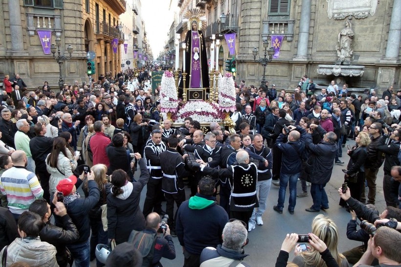 Март в Палермо не сильно насыщен яркими фестивалями или пышными праздниками, но мне удалось успеть на два самых запоминающихся - фестиваль св. Джузеппе (длится неделю с 19 марта) и католическую Пасху (27 марта в 2016 году, в другие годы проходит между 22 марта и 25 апреля). На фестивале св. Джузеппе можно увидеть роскошные алтари, украшенные огромным количеством поделок из теста местных пекарей-мастеров. А католическая Пасха празднуется всю неделю: однозначно нужно увидеть грандиозный Крестный ход (della Via Crucis) в Страстную Пятницу и праздничное шествие La Passione di Cristo в саму Пасху, кроме того можно запастись подарочными коробками с традиционными шоколадными яйцами, которых полным-полно на витринах магазинов в предпасхальную неделю.