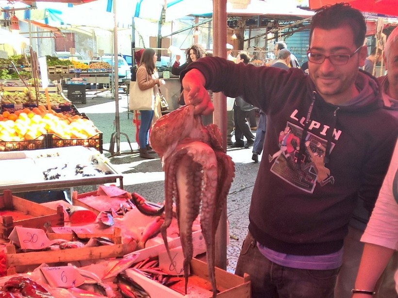 Поменяв «римские каникулы» на отдых в Палермо, я и не только, а еще вся собравшаяся моя семья, замерзла; к тому же по прибытии, в городе, как назло, начался мелкий, противный дождь - в марте погода даже на юге Италии очень и очень переменчива. И уже поселившись в отеле (примерно 3 часа спустя после приезда) улицы были залиты солнцем, а вот погодное приложение в телефоне показывало, что столбик термометра поднялся с +9 до +15. Кстати, хочу заметить, что приехали мы как раз под конец марта, уже после 20-го числа, когда климат постепенно начинает смягчаться после зимних ветров и холодных дождей. Так вот, не смотря на редкие дожди, которые уже во второй половине марта проходят в Палермо максимум раз в три дня и то где-то за час (но уж очень холодает в это время), остальная часть отпуска в Сицилии была теплой и солнечной. К тому же, на второй день путешествия мне повезло с погодой больше всего - температура была около 22 градусов тепла (по ощущениям все 24), так что можно было снимать свитер и гулять вдоль самого колоритного рынка города - Балларо.