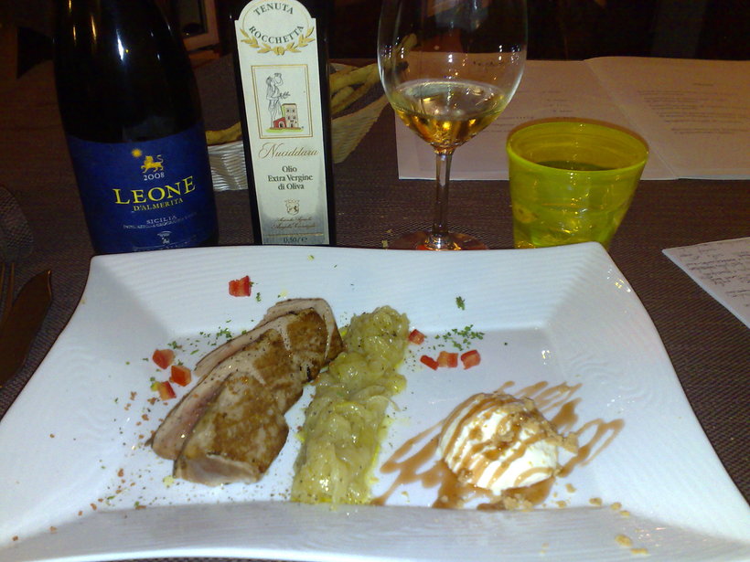 Поспевает в июне и вкуснейшая черешня, правда, стоит в 5-6 раз дороже арбузов. Не могли не побаловать себя персиками и нектаринами, которые также поспевают уже к началу лета – стоят они порядка 3-4 за кг; с вами удача - очень маловероятно наткнуться на невкусные персики на Сицилии! Из прочей еды, обязательно пробуйте в июне тунца. Чрезвычайно вкусно! В другое время года рыбное меню разнообразно, но в июне - только тунец.