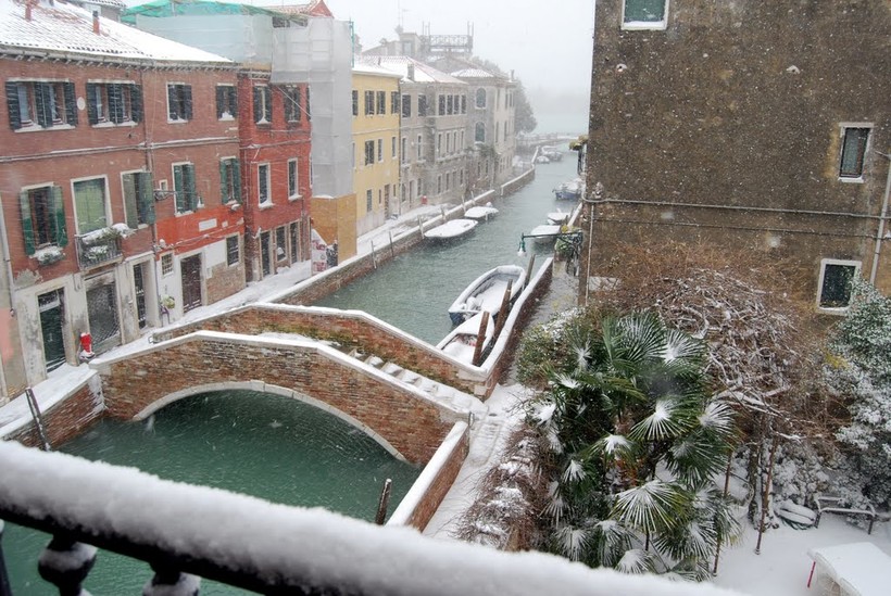 К сожалению, в Венеции я была всего три дня, в середине января. Первые два дня стояла прекрасная погода - пасмурно, без дождя, воздух +7-10 градусов. На третий день похолодало, пошел снег, и на улице стало не очень уютно - все таки высокая влажность дала о себе знать.