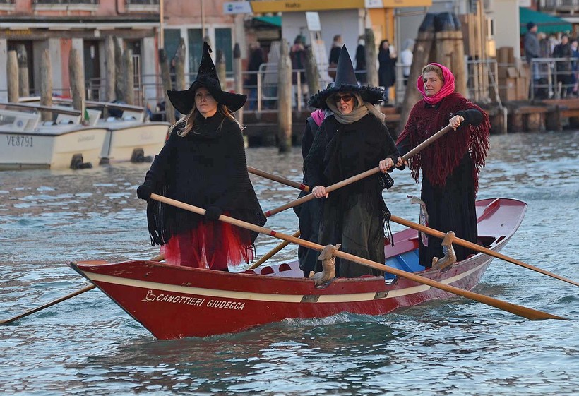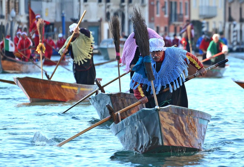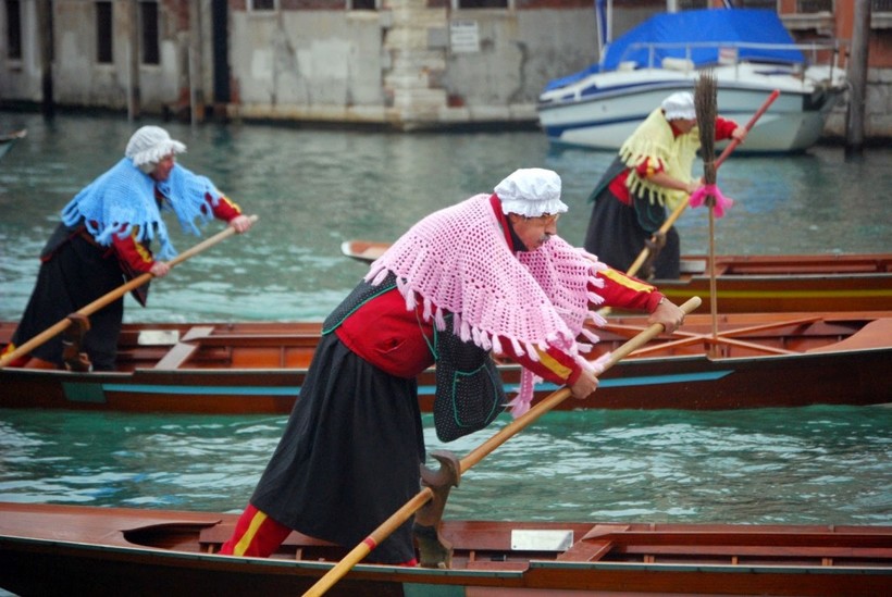 В регате принимают участие не обычные люди, а самые настоящие ведьмы, которые похожи на наших бабулечек возле подъездов. Главный приз - чулок с конфетами, который подвешивают на мосту Риальто.