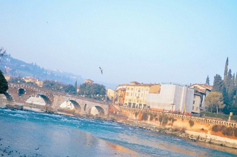 25-градусная температура воздуха порадовала меня, т.к. не было не слишком жарко, ни холодно и я смогла спокойно гулять по городу, осматривая его достопримечательности. Вечером, порой, когда температура опускалась до +18 градусов, я накидывала тонкий пиджак. Но продлилась эта благодать недолго, уже на третий день после моего приезда столбик термометра выдала все тридцать градусов! Несносная жара не давала мне спокойно продолжить свои блуждания по красотам Вероны, поэтому выбиралась далеко от отеля я только ближе к вечеру. А иногда, когда сидеть в номере было уже совсем невмоготу, я посещала берег реки Адиджа, тут, в непосредственной близости к воде, жара переносилась мною гораздо проще, да и вид тут абсолютно прекрасен, местные заботятся о порядке, повсюду чисто и всё ухоженно.