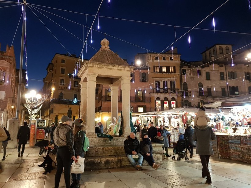 В самой Вероне первооткрывателем стала Пьяцца дей Синьори. 17 ноября я обнаружила множество деревянных шале, торгующих сувенирами, пряными лакомствами и елочными игрушками.