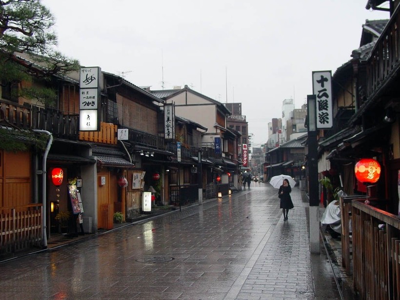 Киото встретил меня неоднозначно. Это был теплый, даже жаркий июньский день, к концу которого пошел сильный дождь. В том июне так было часто, как позже поведали мне местные, это у них в порядке нормы. Июнь в Киото насчитывает равное количество пасмурных и ясных дней, рай для любителей контраста. В целом температура держалась на отметке 25 градусов Цельсия, моя любимая температура. За климат Киото однозначный плюс! Тут тебе и дождик, и солнце, и комфортная температура.