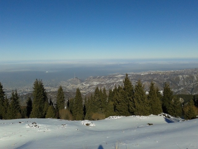 Кроме того, можно прогуляться по местным склонам гор, ехать всего ничего, а прогулка потрясающая! Если в городе снега почти нет, то в горах его просто неимоверное количество! Мы прогулялись по самому любимому местными маршруту — Кок Жайляу.