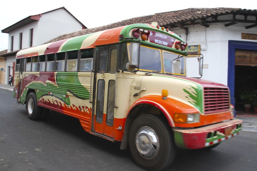 Такие автобусы ходят как по городу, так и за город. Например, на таком мы ехали к вулкану Масая, а это в нескольких километрах от Гранады. На таком же мы возвращались обратно, просто взмахом руки поймав автобус на шоссе. Да, останавливаются они по жесту и на остановках.