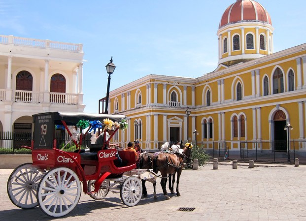 Если совсем скучно, можно прокатиться по центру Гранады на повозке, запряженной одной или двумя лошадьми. Это чисто туристический вариант, поэтому и сильно дорогой. За 10 долларов вас будут целый час катать вокруг основных достопримечательностей, а если хорошее настроение, могут и песню спеть. Представляю, как лошадям жарко: Гранада - один из самых жарких городов региона, к тому же вечером с озера Никарагуа налетают тучи комаров и мошек. Люди легко прячутся от них в кафе и отелях, а вот животным тяжелее.