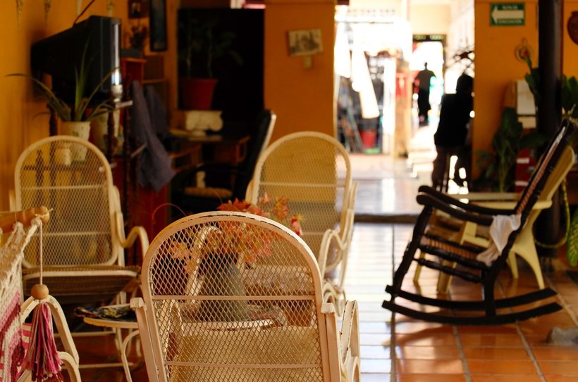 Часто в гостиницах есть мини-кухня с краном, холодильником, столом, вилками-ложками и микроволновкой. И, конечно, гамаки и кресла-качалки! Гамаки висят в холлах и внутренних коридорах, а качалки - для хозяев. Кстати, качаться - неприлично. Местные только вечером сидят в качалках у своих домов, поглядывая на прохожих на Кальсаде.
