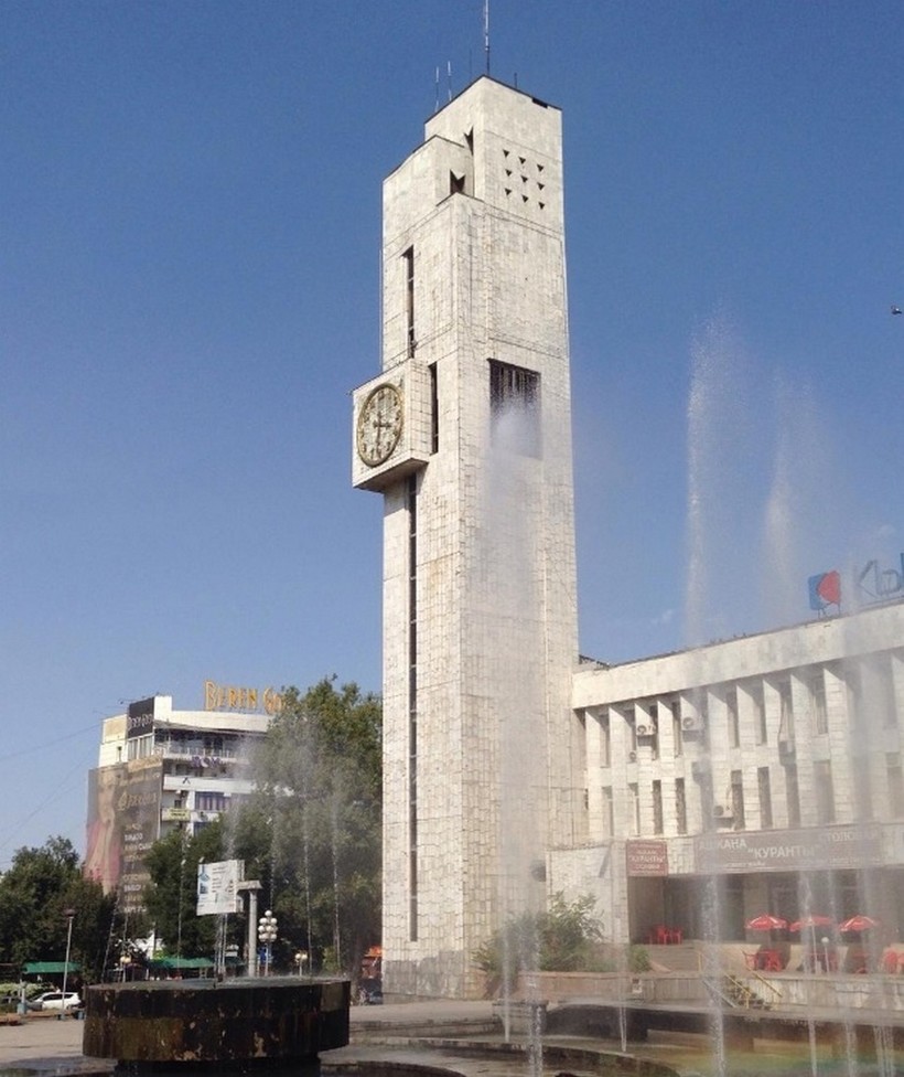 Из достопримечательностей удалось осмотреть «Башню с курантами» в центре столицы — этакий памятник советского строгого прошлого. В майский солнечный день получились отличные фотки.