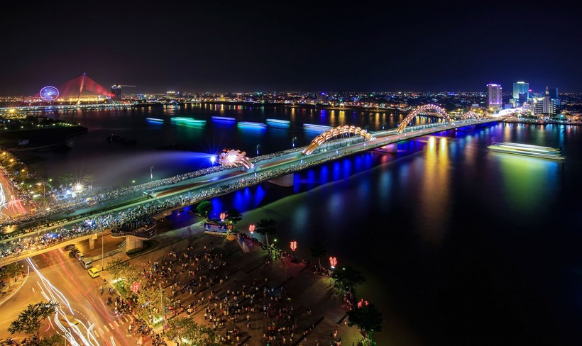 Дананг - город мостов. Всего насчитывается около 9 крупных и уникальных мостов и они служат украшением города. Каждый мост является достопримечательностью и отличается своеобразной архитектурой. Когда мы с супругом переехали в Дананг, то первое что нас впечатлило кроме широких улиц - вот эти самые невероятные мосты. Все мосты являются подвесными, так как проходят над рекой Хан и соединяют две части города, сам же город частично расположен на полуострове Сон Тра (окруженный одноименной горой) где нам с мужем и посчастливилось обосноваться. Также все мосты имеют не только несколько полос движения в разные стороны, но и пешеходную зону для прогулок. К тому же, все мосты красиво подсвечиваются ночью и манят тысячью огнями. Расскажу о своих самых любимых и впечатляющих мостах. Самым знаменитым мостом является Драконий мост или Dragon Bridge который выполнен в виде дракона парящего над рекой. Вес моста - около 1000 тонн и он является крупнейшим в мире, длина моста 666 метров. У драконьего моста имеется система освещения из 15 000 светодиодных осветителей и вечером он красиво подсвечивается и может менять цвета. Также поражает способность дракона извергать пламя и воду! Это своего рода целое шоу - по выходным около 20:00 часов вечера можно увидеть это представление: из пасти дракона вырывается сначала пламя, а потом и вода. На это время движение на мосту частично перекрывается.
