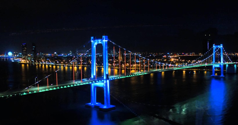Мост Туан Фуок (Thuan Phuoc Bridge) является копией моста Золотые Ворота в Сан-Франциско и самым крайним мостом, который видно с балкона нашего дома. Длина моста составляет 1855 м. Это самый длинный подвесной мост во Вьетнаме. Конечно же, ночью мост особенно прекрасен и постоянно меняет цвета - от голубого до розового и от белого до зеленого.