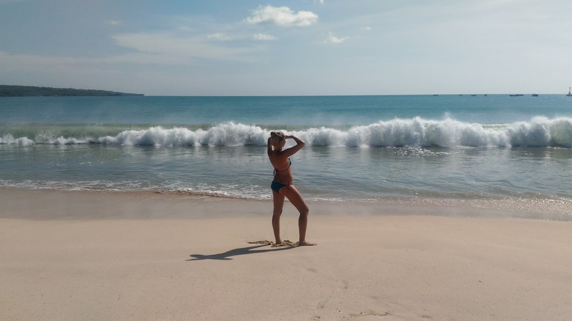 В целом, Джимбаран никакой для отдыха, пляж с крупным круглым рыжим песком, море всегда сильно штормит, из-за этого невозможно купаться постоянный трафик на дороге, мало фруктов, мало туристов, много кафешек, несколько магазинов, много отелей и все. Джимбаран прекрасно подойдет для первых двух - трех дней, чтобы взять мопед, поездить по всем пляжам и туристическим местам Букита, найти другое жилье в понравившейся части Букита или отправится в глубь острова. Но уже тут вы сможете почувствовать неповторимый местный колорит. Зато чтобы сделать фото на пляже не нужно ждать, пока кто-то уйдет из кадра, на пляже совсем мало людей.