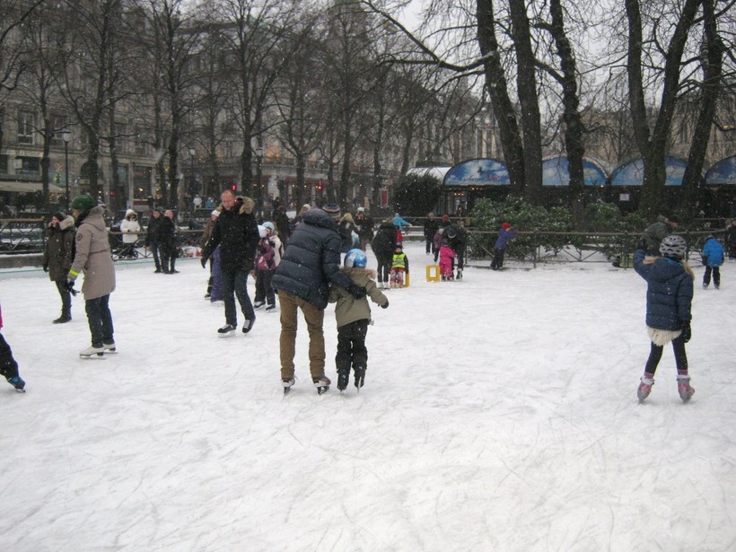 Посетите Центральный каток. Вход свободный, но придётся оплатить аренду коньков. Около проката располагаются небольшие павильончики, где продаются горячие напитки, еда.