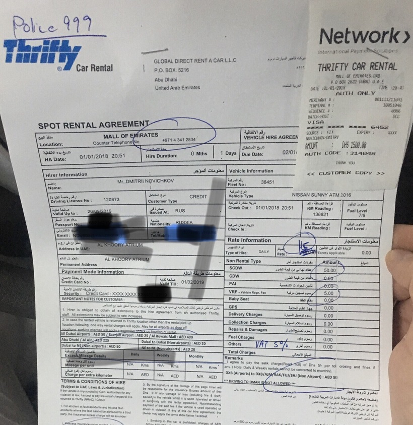 Мой прокатный офис находился в Эмирейтс Молл на 3 ем уровне рядом с выходом на паркинг. Найти легко было. Из условий аренды –сутки мне обошлись в 3000руб плюс я залил бензин на 700 руб – ездили в Абу Даби – 125 км туда и 125 обратно. При аренде сначала расстроился что авто не новый и весьма пошарканный, думал что сейчас половину повреждений не замечу и все повесят на меня. Но зато коробка –автомат (других и не было). В отличие от «европейской модели» сдачи машины в аренду, когда я ходил с бумажкой или фотографировал и показывал прокатчику повреждения, а он вносил их в лист. Здесь был сканер, который зафиксировал все повреждения, даже которые я не заметил, и все это автоматически легло в лист приемки. Потом точно так же щепетильно салон. Далее роспись и вперед. Пришлось помучаться с выездом – иногда карты в айфоне «теряли сигнал» и стрелка зависала. Потом вроде таких трудностей не было. Вечером след дня приехал и сдал авто. Мне сказали что резерв средств висит около месяца, пока придут штрафы (возможные), а потом можно позвонить в банк и в принципе резерв средств снять. Уже несколько раз так делал. Прокатные конторы забывают снимать бронь, а может им лень. В любом случае вопрос решается звонком в банк через 20-30 дней. Правда через несколько дней после сдачи авто сняли оплату проезда платной магистрали – 160 руб. Ее фиксируют камеры при проезде определенных точек. Зато самому не надо заморачиваться и искать, где же оплата. Парковки есть везде и кто-то писал что они дорогие. Ничего подобного – есть разные, но с центром Москвы по 200руб в час, там ничего не сравнится. Самая дорогая попавшаяся мне парковка стоила – внимание! (ДУБАЙ,НЕФТЬ,ЗОЛОТО, РОСКОШЬ) – 80 руб. в час без каких либо прогрессий за 2 и 3 час. Итого мне авто с бензином и платной дорогой обошелся в 4000 руб в сутки. Это на 4 пассажиров вообще гуманно. Учитывая, что мы ездили в Абу-Даби и исколесили его весь.