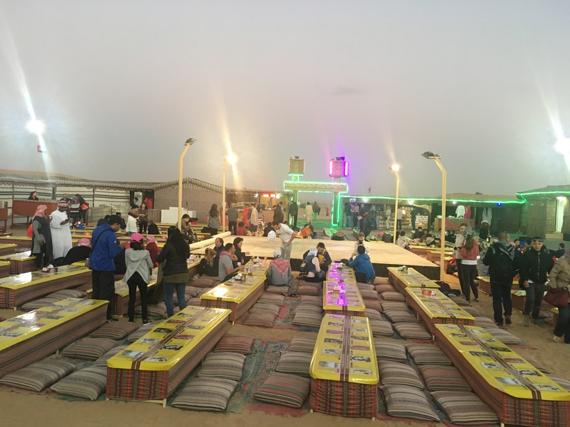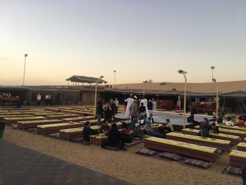для меня отличной экскурсией стало джип сафари в аравийскую пустыню. Мы заказывали на троих - стоило 220$ . За нами приехали прямо в гостиницу в районе 14.30. Это делается для того чтобы застать закат в пустыне и насладится великолепными фото. Первая остановка - это возможность покатататься на квадроцикле за 200-300 дирхам - 20 минут. И купить платки на голову. Конечно же продавцы будут рассказывать что без них в пустыне никак. На самом деле можно спокойно обойтись. Далее остановка для красивых фото на барханах. Потом само сафари когда крузеры 200 вереницей гоняют по барханам очень круто. Потом приезд в лагерь , где вас ждёт танцы живота, огненное шоу, кальян, чай и вкусный ужин в традиционном стиле сидя на топчанах . Все заканчивается в районе 21.00 . Мы были первый раз в пустыне - впечатлений масса. На вечер берите тёплые вещи - в пустыне после захода солнца реально холодно.