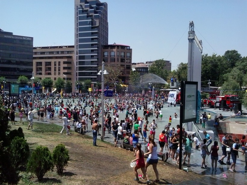 Туристы Вардавар просто обожают, а власти города с недавних пор сделали Лебединое озеро возле Оперного театра легальным местом для Вардавара. Там даже стоит поливальная машина и обливает всех и вся.