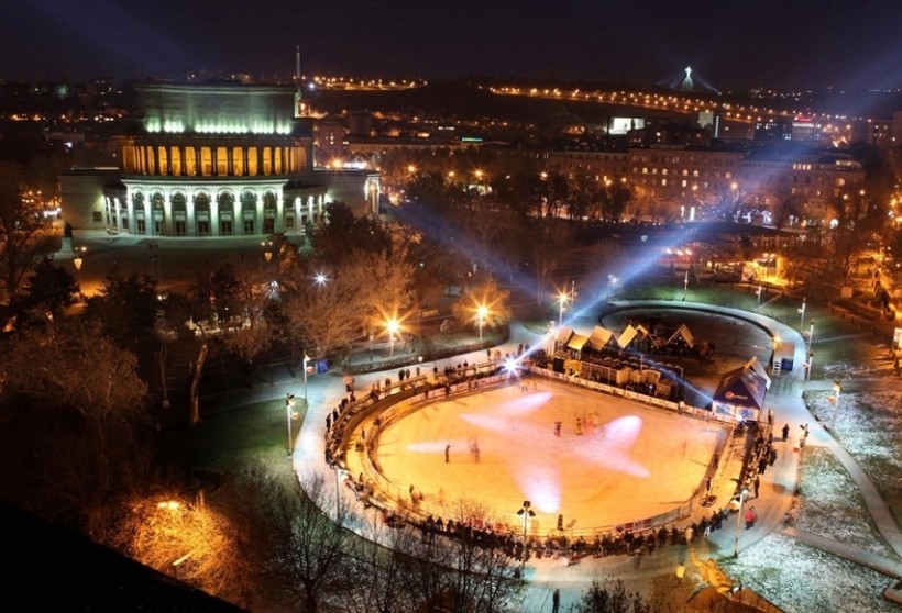 Еще одна популярная улица у туристов – улица Туманяна. Она расположена также в центре (пересекается с Северным проспектом). Здесь находится Оперный театр – с одной стороны, и красивое Лебединое озеро – с другой. На территории вокруг Оперного театра есть большая площадка, где катаюся на велосипедах, роликах и скейтбордах, а вот Лебединое озеро зимой превращается в каток.