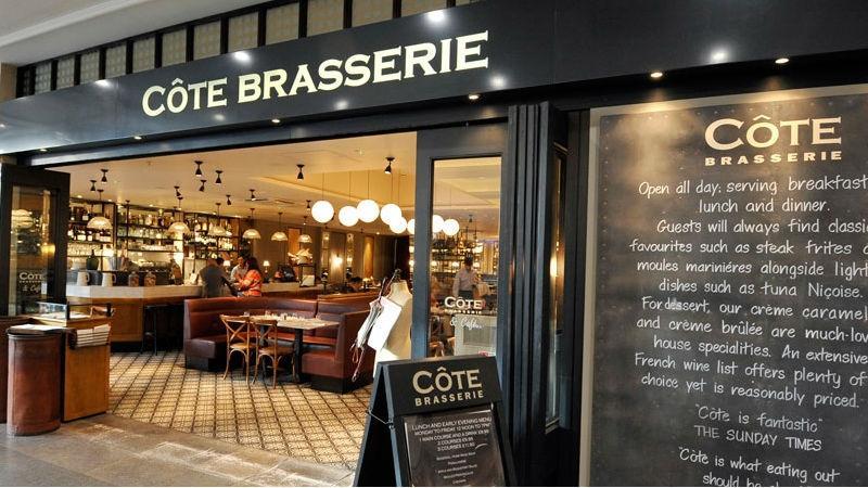 Французский сетевой ресторан Côte - отличное место для тех, кто хочет вкусно и недорого пообедать. Есть фикс меню - два курса около 11 фунтов или три курса за 13 фунтов, если обедать с понедельника по пятницу с 15.00 до 19.00 или по выходным с 12.00 до 18.00