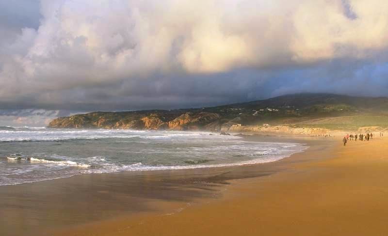 К океану ездили не в Кашкайш, как большинство туристов, а на пляж Гиньшу. Очень живописные волны - я даже решилась зайти в воду по щиколотку) Температура моря не для купания, конечно)) По ощущениям +8С.