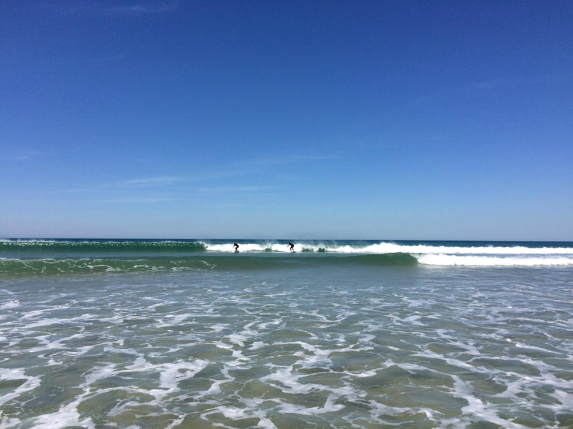 Carcavelos. Недалеко от станции. Отличные волны. Здесь же находится школа серферов. Очень рекомендую взять несколько уроков. Отличное развлечение, которому холодная вода - не помеха. Есть прокат снаряжения, медпункт, спасатели.