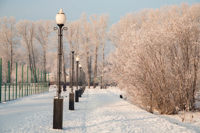 Морозная погода в февральском Иркутске