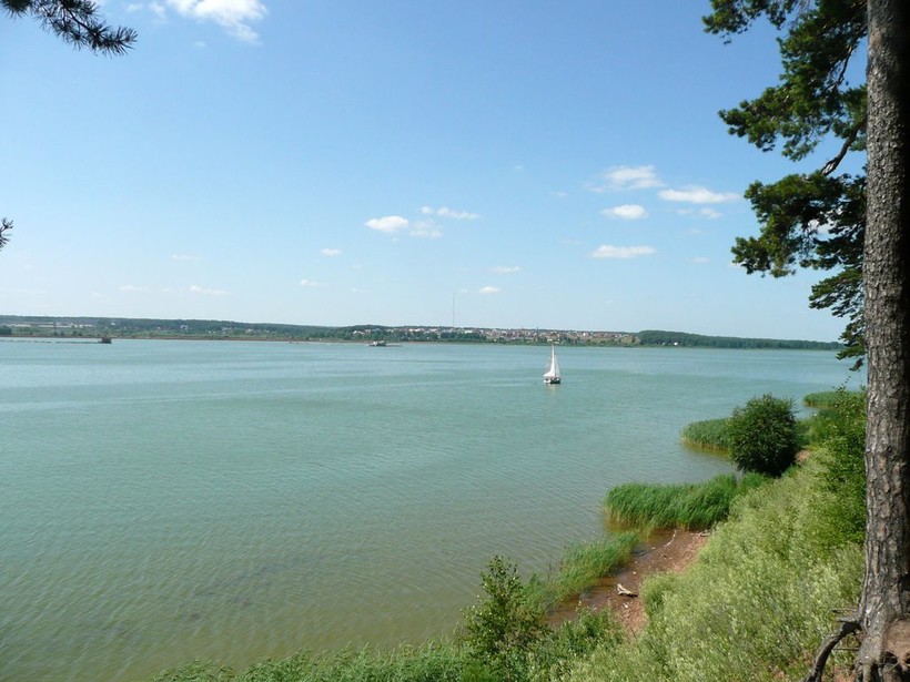 Выйдя из отеля, стало сразу понятно, что день будет жарким. Температура уже с утра (часов 10 по местному времени) достигла отметки 25 градусов. В воздухе намечалась духота, которая затем перешла в дневной зной. Летом особенно в июле погода в Ижевске знойная, сухая, не совру асфальт плавится. Температура днем приближается к 40 градусам. Выручает в такие дни горожан и гостей большой и красивый пруд-водохранилище. Особенно он живописен там, где впадает река Иж. Водная гладь и сосновый бор – красота.