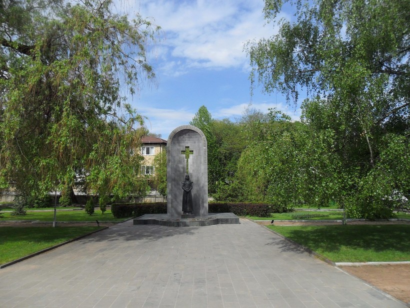 Красивая композиция посвящена военным медикам. С августа 1941 года курорт превратился в огромный госпиталь. Санатории, пансионаты, лечебницы были переоборудованы. До 1944 года врачи занимались исключительно спасением фронтовиков.