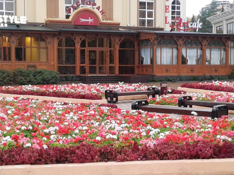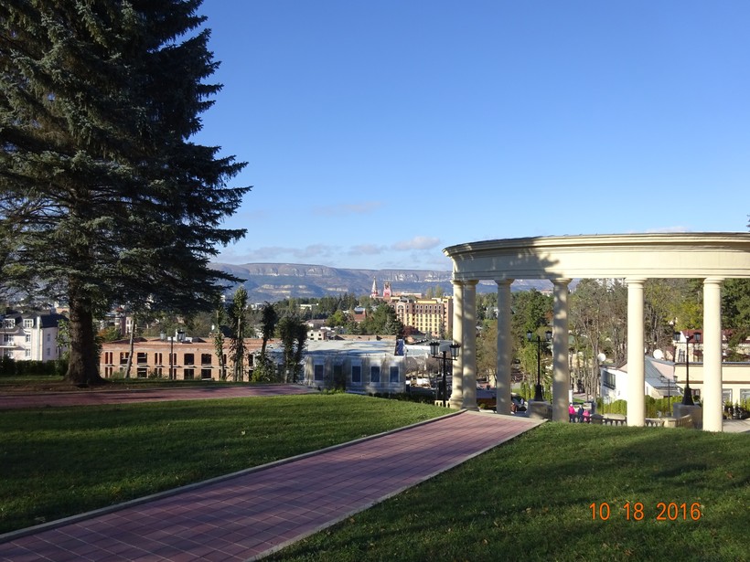 Пятого октября я вышла из поезда в Кисловодске. Город встретил меня замечательной погодой: день солнечный, теплый, пришлось снять осеннюю куртку, которую надела в Москве. Первые впечатления — попала из осенней Москвы в лето. Воздух чистый и свежий.