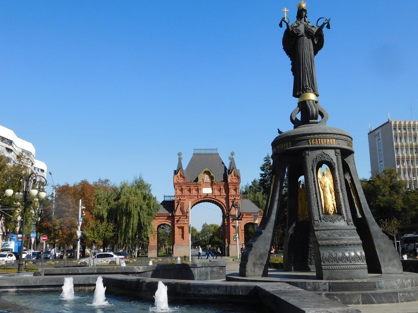 Бывают у них и майские грозы, сильные, но не затяжные. Нам повезло - погода была солнечная, ясная. И мы полностью изменили свое мнение о столице Кубани. Думали, что это обычный провинциальный городок. Ан нет - уютный, и в то же время величественный град кубанских казаков!