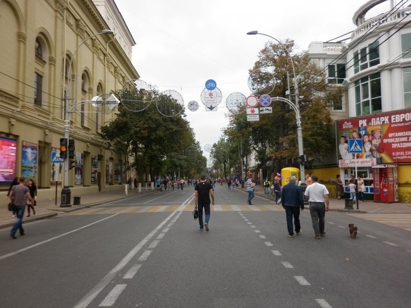 Они часто гуляют по центральным улицам города. Тем более, что многие до сих пор едут на море и остаются в Краснодаре для того, чтобы передохнуть после долгой дороги на море. Особо крупных достопримечательностей здесь нет. Зато очень развита инфраструктура, погода способствует длительным прогулкам, катанию на велосипеде и так далее.