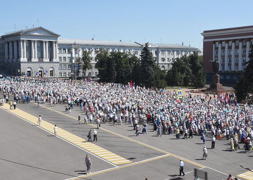Курск - не туристический город, так что туристы здесь встречаются довольно таки редко, однако, за счет Кореной пустыни, религиозно-значимого места в Курской области, на тот момент, когда образуется церковное шествие, именуемое крестным ходом, в город приезжают верующие туристы, дабы принять участие в этом мероприятии. Ежегодно, на день города в Курск привозят икону из Америки и с ней проходят от центральных улиц до Кореной пустыни. Честно сказать, я человек не особо верующий и поэтому никогда не принимал участие в таком мероприятии, однако довольно таки часто видел масштабы этого шествия, они впечатляют.