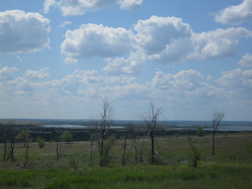 Степь у нас в июле выгорает на солнце, становится желтой и почти безжизненной. Зато может появиться саранча, которая сжирает все на своем пути. Она и в город иногда залетает, бррр…