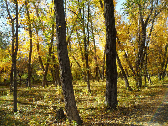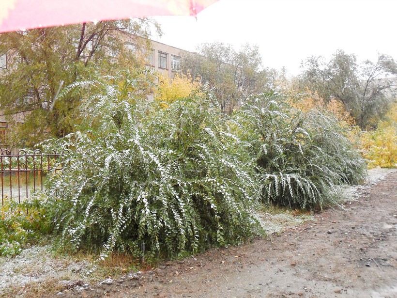 К концу октября становится прохладней, деревья значительно «лысеют», только стойкий карагач долго стоит зеленый, могут быть заморозки и даже пойти снег. Иногда снег у нас идет «правильно» - на Покров 14 октября. Первый снег долго не лежит, тает, а потом может пойти не скоро.